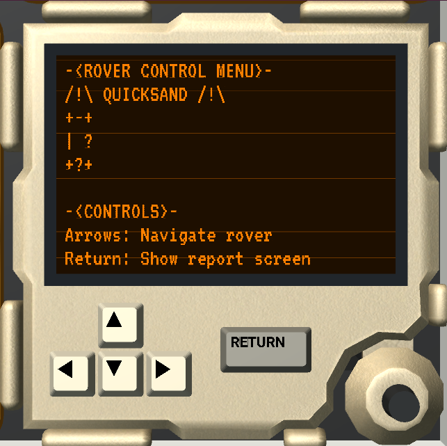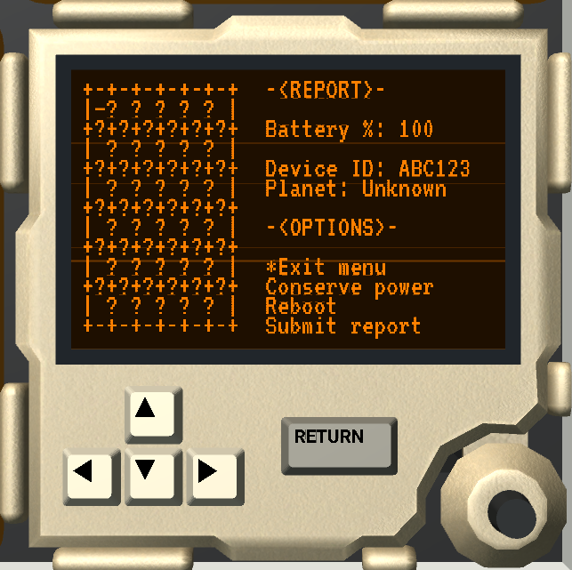 It was made to emulate the appearance of an old computer terminal, and I think I did a great job with that! Eager to release this, but it needs a lot of development, as all you can do is move about, conserve power, reboot and submit.