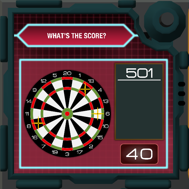 The minigame consists of three rounds — in each round, three darts will be thrown, and you have to calculate the new score on the right.