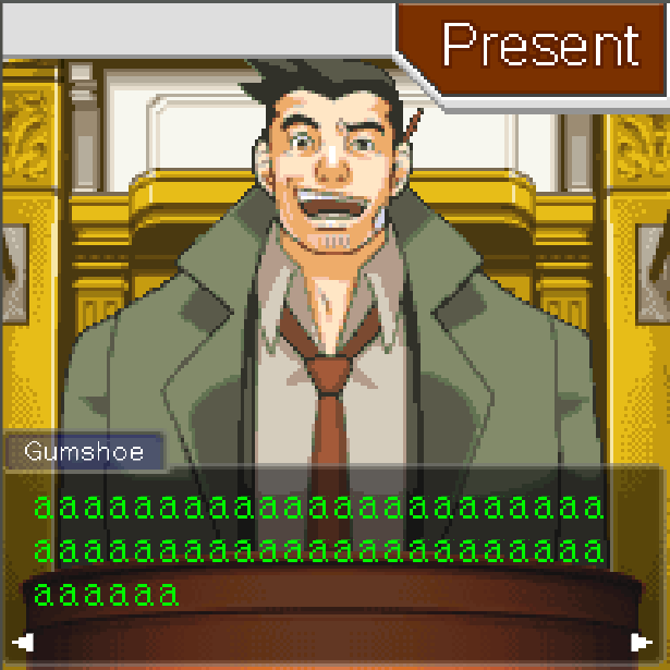 Its file size is huge because of all the sprites it uses. Basically all characters from Phoenix Wright: Ace Attorney to Apollo Justice: Ace Attorney can appear as witnesses on it!